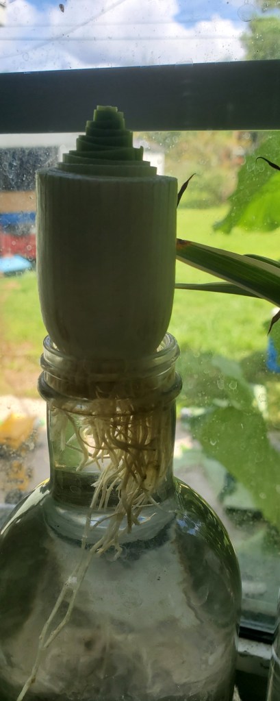 Make sure you wash your leeks after you cut them. They can be really dirty inside. I actually cut the bottom of the leek off and place it in water for a few days and then replant them in my garden. I also do this with all my green onion.
