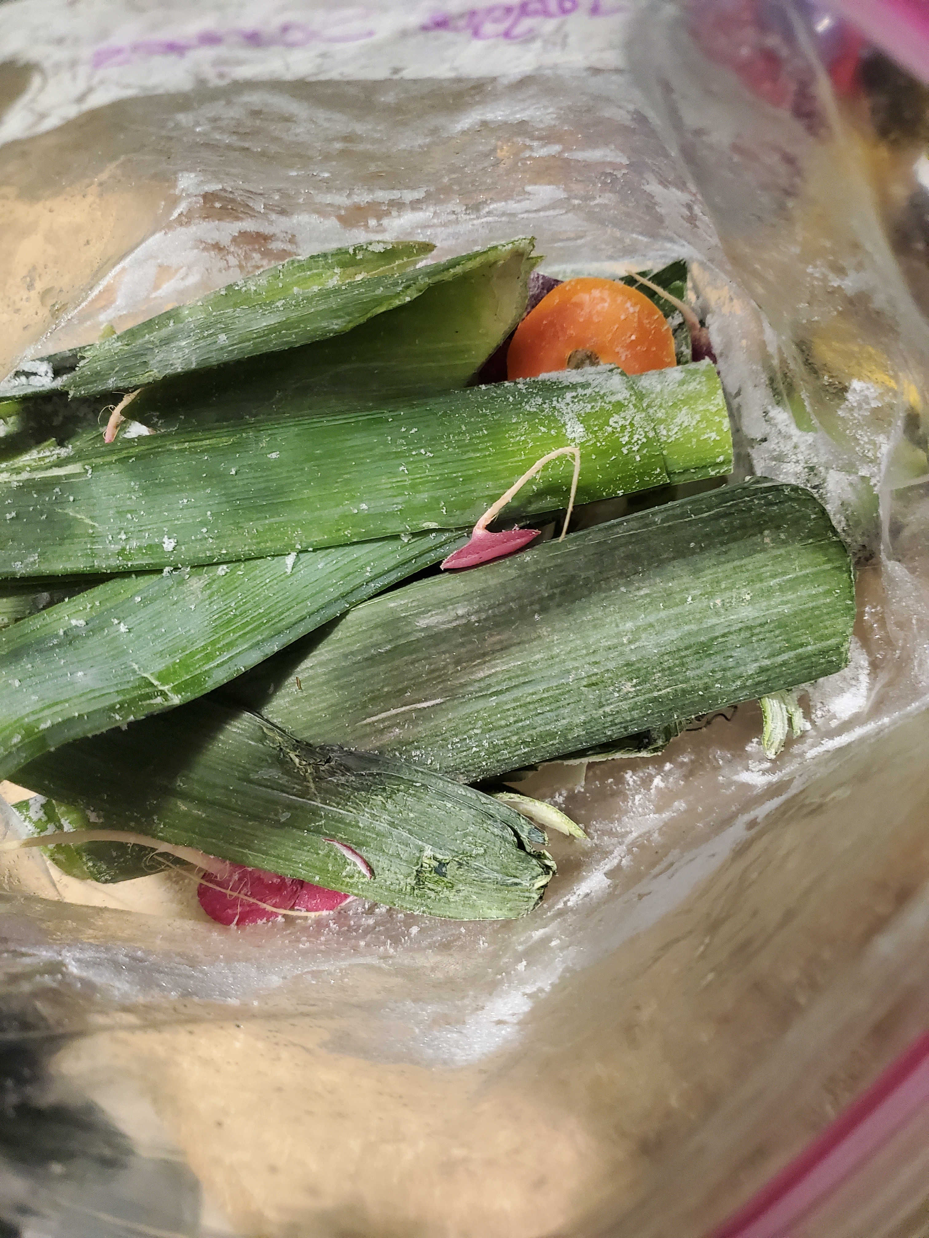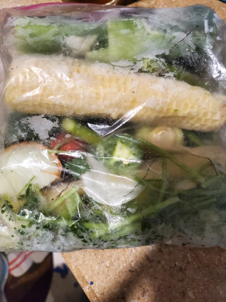 As many of you know, broth is expensive, and in some of my experiences, what I’ve bought from the store really hasn’t had flavor. So I decided to start making my own but didn’t want to just use my meats and veggies just for broth, which really got me thinking…. why not freeze my scrap veggies in a ziplock in the freezer and use it later to make broth!!! Why don’t I trim my meats and freeze the trimming and left over bones I cut off and make homemade bone broths?