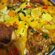 - Remove lid, add coconut milk, stir and cook on medium low into heated through. Serve by itself or over rice. Garnish with cilantro and enjoy.